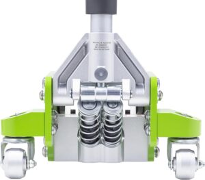 The Rapid Pump system is excellent, requiring far fewer strokes to reach maximum height compared to budget jacks. The steel construction is heavy, but the industrial-grade casters roll smoothly across concrete. It’s simple, effective, and built to take a beating year after year.